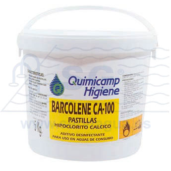 Una pastilla de Barcolene ca-100 por 50 m³ de agua en depósitos. Mediante dosificador, a situar en instalación de suministros de agua. En
