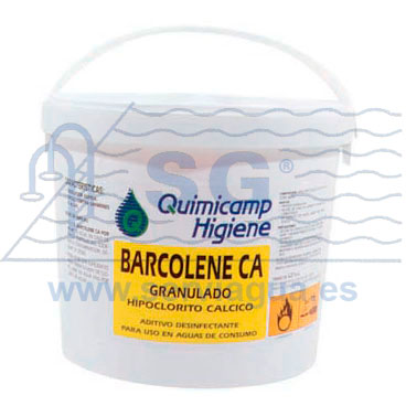 20 g de Barcolene ca por 10 m³ de agua; en caso de mayor temperatura, suciedad o contaminación, doblar la dosis. Estas dosis son suficientes para tener 0,6 ppm de cloro libre en agua (mg por litro de agua).