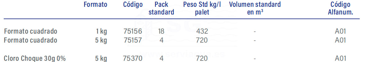 cloro choque en tabletas de 30g cuadrado