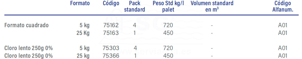 cloro lento tableta 250 g 0% ácido bórico 25kg
