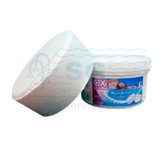 Multiacción sólido en tabletas de 500 grs., que con su sola aplicación en el agua de la piscina se consigue eliminar las bacterias, virus y microorganismos en general, evitar el desarrollo de las algas y mantener el agua transparente y cristalina.