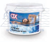 Consejos de uso: Adicionar a principios de temporada 4 Kgs. de CTX-400 por cada 100 m³ de agua en los skimmers. mantener en el agua una cantidad entre 30-75 ppm de CTX-400.