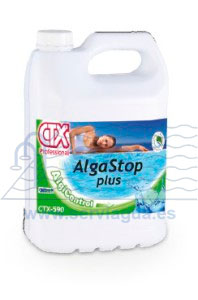 Antialgas superconcentrado líquido adecuado para la eliminación de todo tipo de algas, durante el tratamiento de recuperación del agua de la piscina.