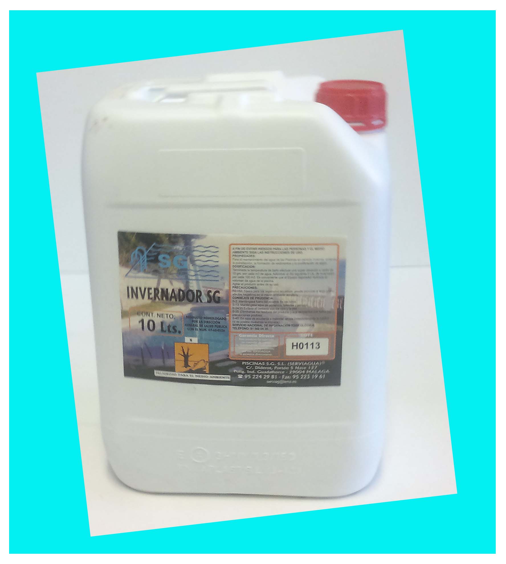 Consejos de uso: Al finalizar la temporada de baño y sin haber suspendido el tratamiento de mantenimiento, efectuar una supercloración con Dicloro Granulado (15 grs./m3). Adicionar al día siguiente 5 lts. de producto Invernador SG por cada 100 m3 de agua. El valor pH del agua, deberá estar situado entre 7,2 - 7,6. Verter la dosis necesaria de producto directamente sobre el agua de la piscina, siendo necesario poner el equipo de filtración en marcha, el tiempo suficiente para obtener una buena distribución del producto en el agua.
