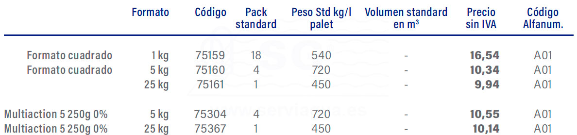 Multiacción en tabletas de 250g cuadrado 1 kg