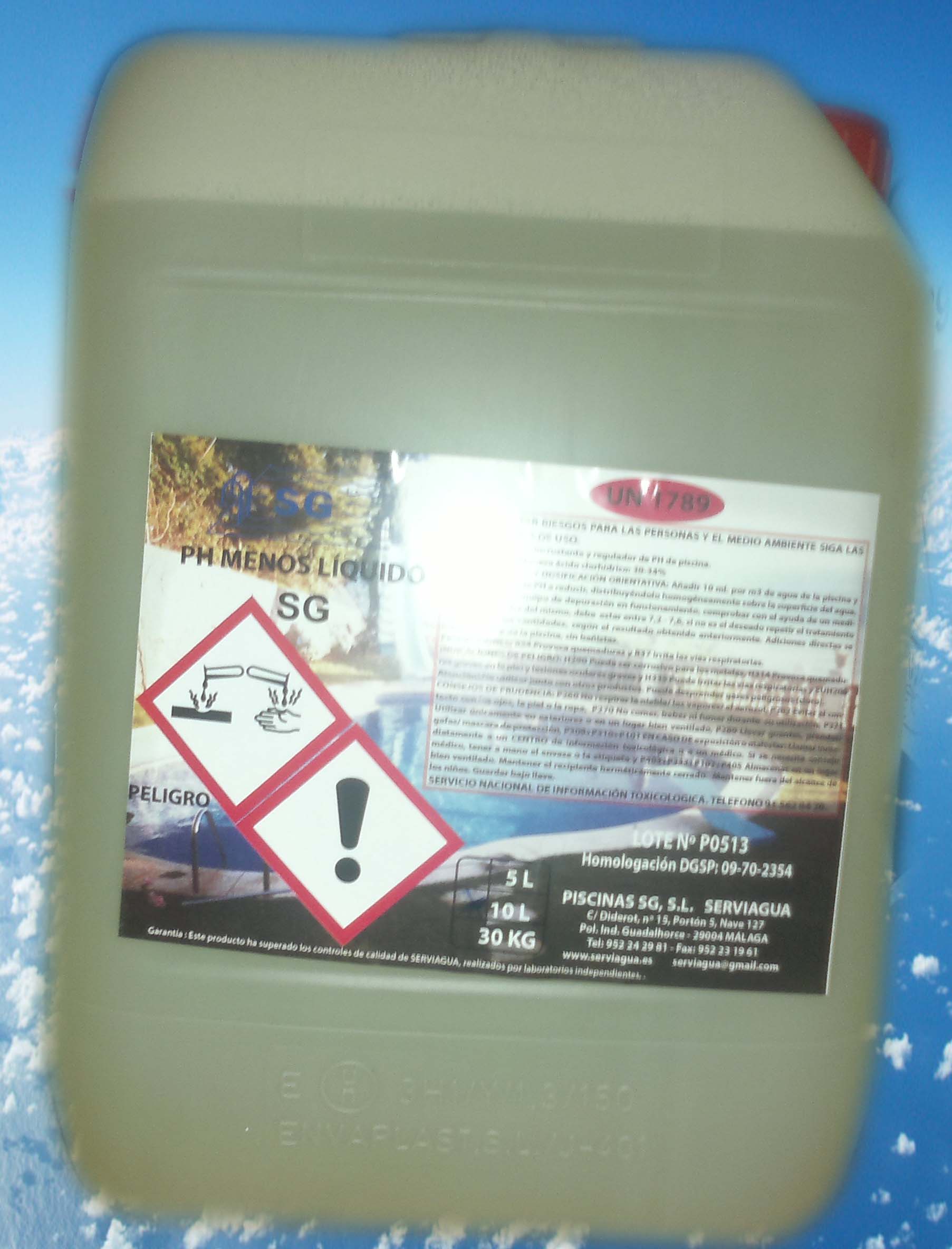 Compuesto líquido para reducir el PH del agua. Envase de 10 L.