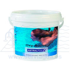 Tabletas de oxígeno activado de 100 gr. Para la desinfección continua de piscinas privadas. Exento de cloro.