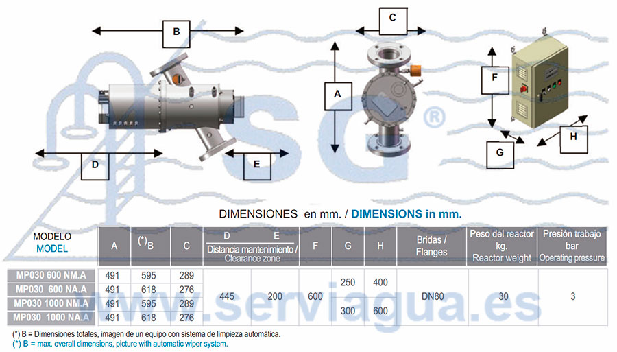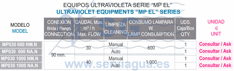 EQUIPOS ULTRAVIOLETAS PARA PISCINAS PUBLICAS “SERIE MP EL” 1000 NA.N